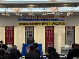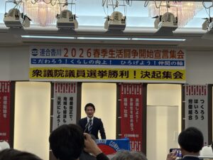 2月4日(水)18時からマリンパレスさぬきで開催された「連合香川 2026春季生活闘争開始宣言集会」「衆議院議員選挙勝利!決起集会」に参加しました。